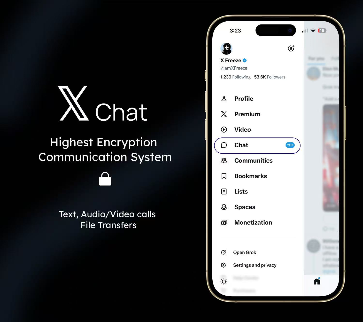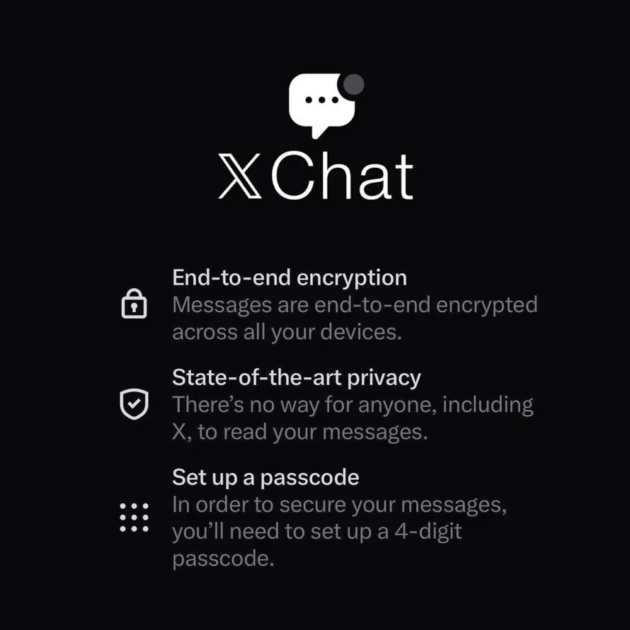 It is 𝕏 Chat created by Musk, an end-to-end encrypted, peer-to-peer privacy chat tool. It competes with WhatsApp / Signal and aims to be an encrypted communication tool for the entire X ecosystem.